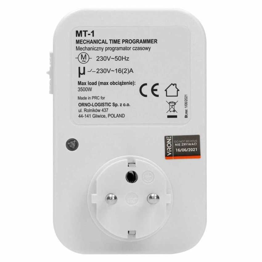Časovač zásuvkový mechanický ORNO MT-1 umožňuje přesné časové řízení spotřebičů s maximálním zatížením 3500 W. Jeho konstrukce je vhodná pro jednoduché ovládání elektrických zařízení. Produkt dodává společnost ORNO GROUP Sp. Z o.o. A je určen pro snadnou instalaci do běžných zásuvek.