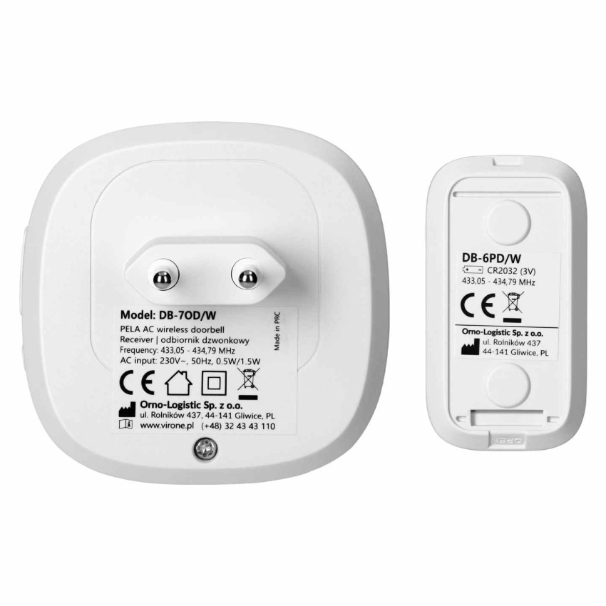 Bezdrátový zvonek ORNO PELA AC s dosahem 300 m, 60 melodiemi a LED RGB osvětlením. Napájený na baterie, samoučící funkce.