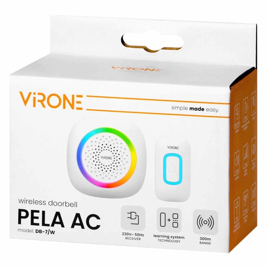 Zvonek ORNO PELA AC nabízí bezdrátový provoz na baterie s dosahem až 300 metrů. Disponuje 60 melodiemi a LED RGB osvětlením pro vizuální signalizaci. Samoučící funkce umožňuje snadné spárování přijímače a vysílače. Design v bílé barvě doplňuje moderní vzhled a praktické využití v domácnostech i kancelářích.