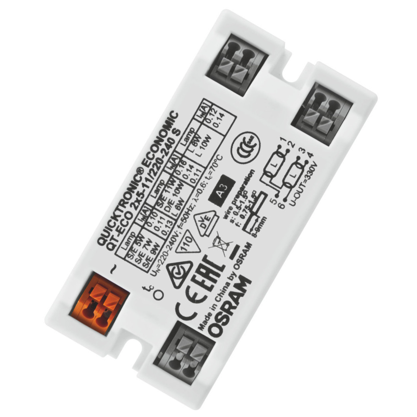 OSRAM PŘEDŘADNÍK QT-ECO 2X5-11/220-240 S 80X40X22MM PRO KOMP ZÁŘ