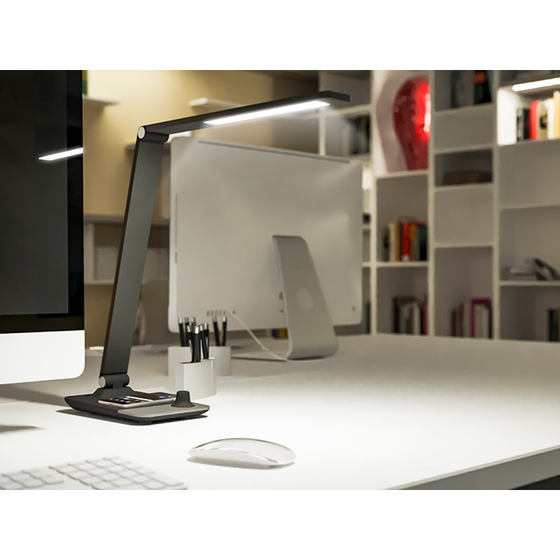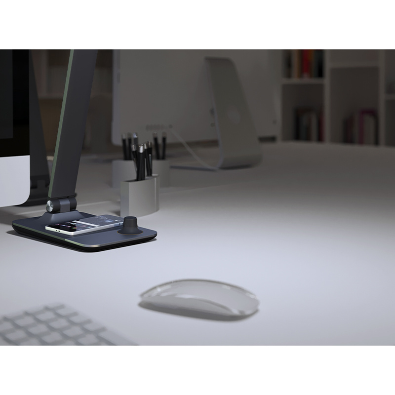 Elegantni stolní LED lampička s integrovanou bezdrátovou nabíječkou v podstavci.