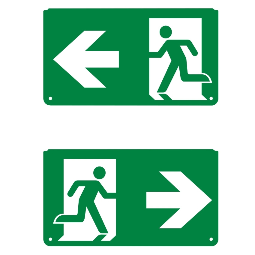 Piktogram EM EXIT PICTO LEFT RIGHT LEDVANCE pro nouzová svítidla, směrování doleva nebo doprava. Určen pro snadnou orientaci při evakuaci, vhodný pro komerční a veřejné prostory.