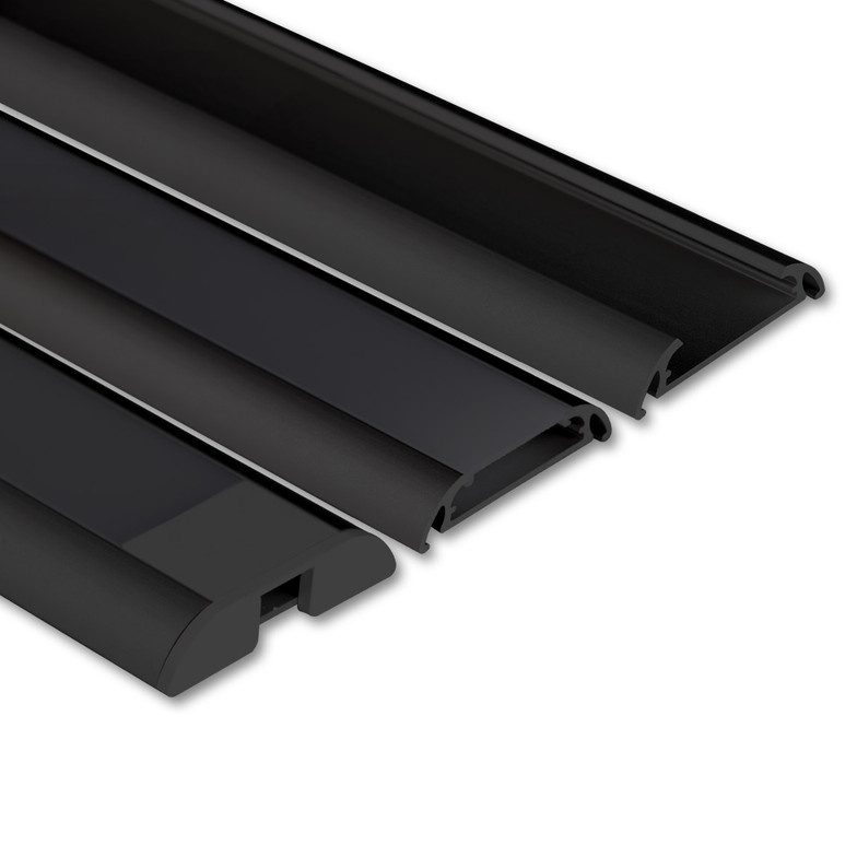 Kvalitní plastový difuzor dodávaný jako součást tohoto profilu je zabarven do černého odstínu, je UV stabilní a ani s časem nemění své vlastnosti: nepraská a lze jej opakovaně nacvaknout. Tento černý difuzor pomáhá rozptýlit světlo z jednotlivých LED tak, aby bránil nežádoucímu oslnění a vyzařované světlo tak působilo jako kompaktnější linie. Pro nejlepší výsledky bez viditelných LED („tečkování“) doporučujeme použít LED pásek s min. 180 LED/m.