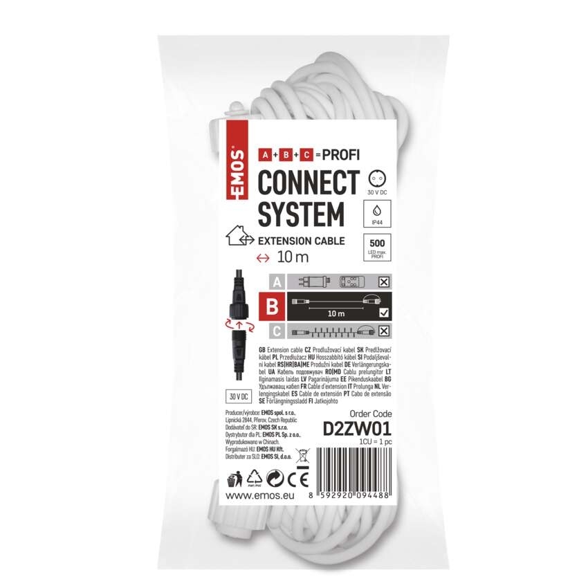 Prodlužovací kabel EMOS D2ZW01 v bílém provedení je součástí systému CONNECT SYSTEM PROFI, který umožňuje snadné a bezpečné rozšíření světelných instalací. Díky délce 10 metrů poskytuje dostatečný dosah pro propojení řetězů či přívod elektrické energie i na vzdálenější místa. Kabel je vhodný pro použití v interiéru i exteriéru a zajišťuje spolehlivé propojení všech prvků systému.