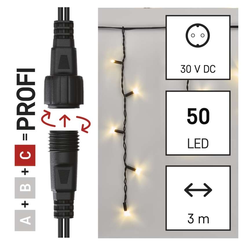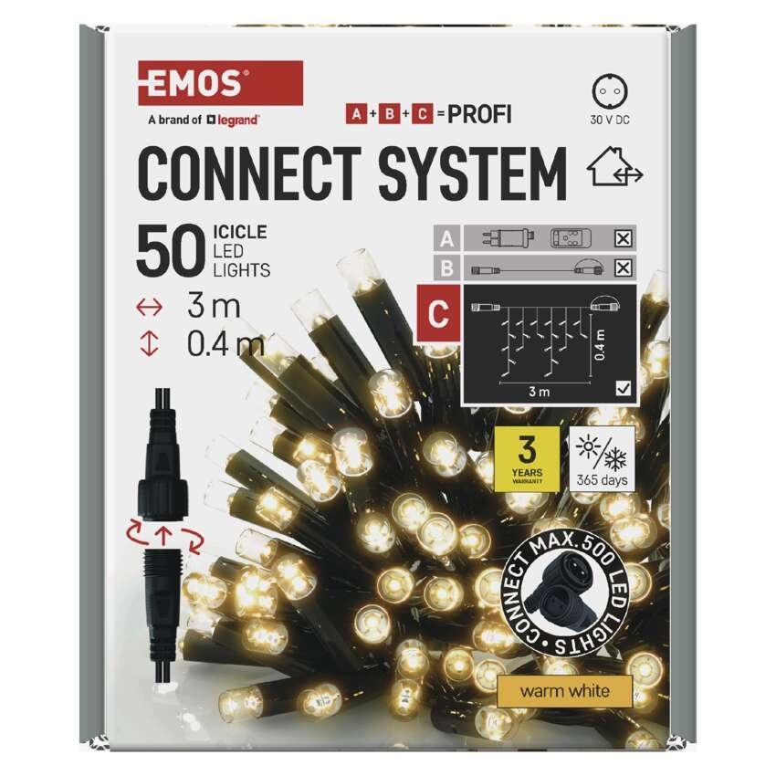 Profi LED vánoční spojovací řetěz černý EMOS D2CW01 50LED 3m krápníky teplá bílá