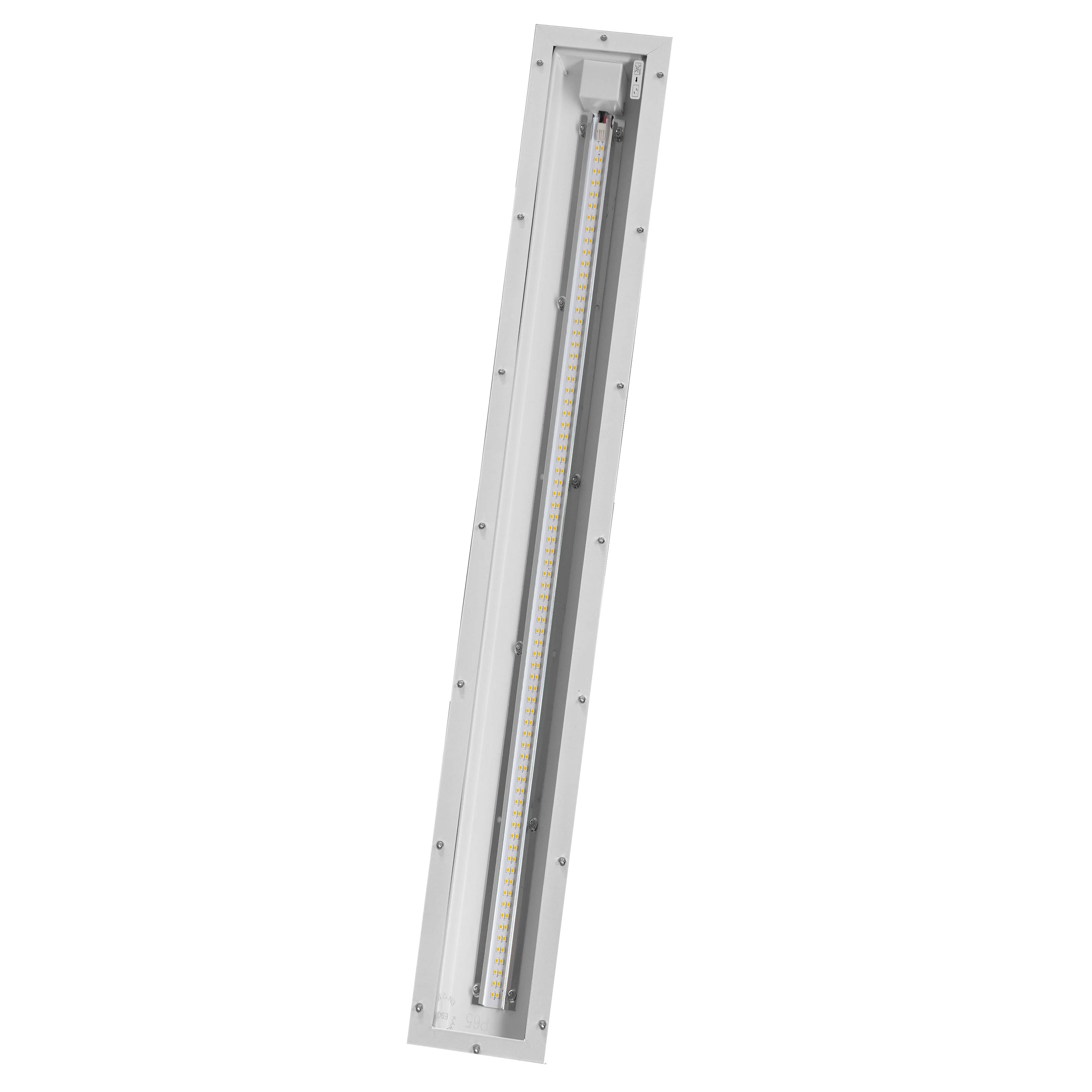 MODUS MEGAN100, 1275x145, širokozářič, skleněný kryt, 1x LED 840, závěsné, s předř. skříní, 700mA nestmívatelný Průmyslové hliníkové svítidlo Ideální svítidlo pro průmyslové aplikace se zvýšeným krytím IP65. Obdélníkový tvar svítidla je ideální pro rovnoměrnost ve výrobních halách a dalších prostorech. Na výběr je ze dvou typů optického systému - širokozářič a hlubokozářič. Dále je možno zvolit z několika typů krytů - základní varianta je vybaveno tvrzeným čirým sklem, ovšem je možno zvolit také opláový či čirý polykarbonát (odolnost proti nárazu), PMMA mikroprisma (pro chemickou odolnost a nízké oslnění) nebo polykarbonát mikroprisma (odolnost proti nárazu a nízké oslnění). Právě kombince obdélníkového tvaru a velký počet optického systému z tohoto svítidla dělají ideální volbu pro vaše projekty. Svítidlo je vybaveno externím driverem, což je důležité pro teplotní management svítidla. Svítidlo je nerozebíratelné, rychlá instalace přes konektor v krytí IP65. Standardní montáž je závěsná, pomocí příslušenství (MEGANMONTSET) je možno svítidla instalovat i jako přisazená. Jako speciální verzi nabízíme MEGAN.../HT - certifikace na Ta 600C Standardní verze je certifikována na Ta 400C. Účinnost svítidla až 174lm/w (verze s čirým sklem 31.300 lm/180W)