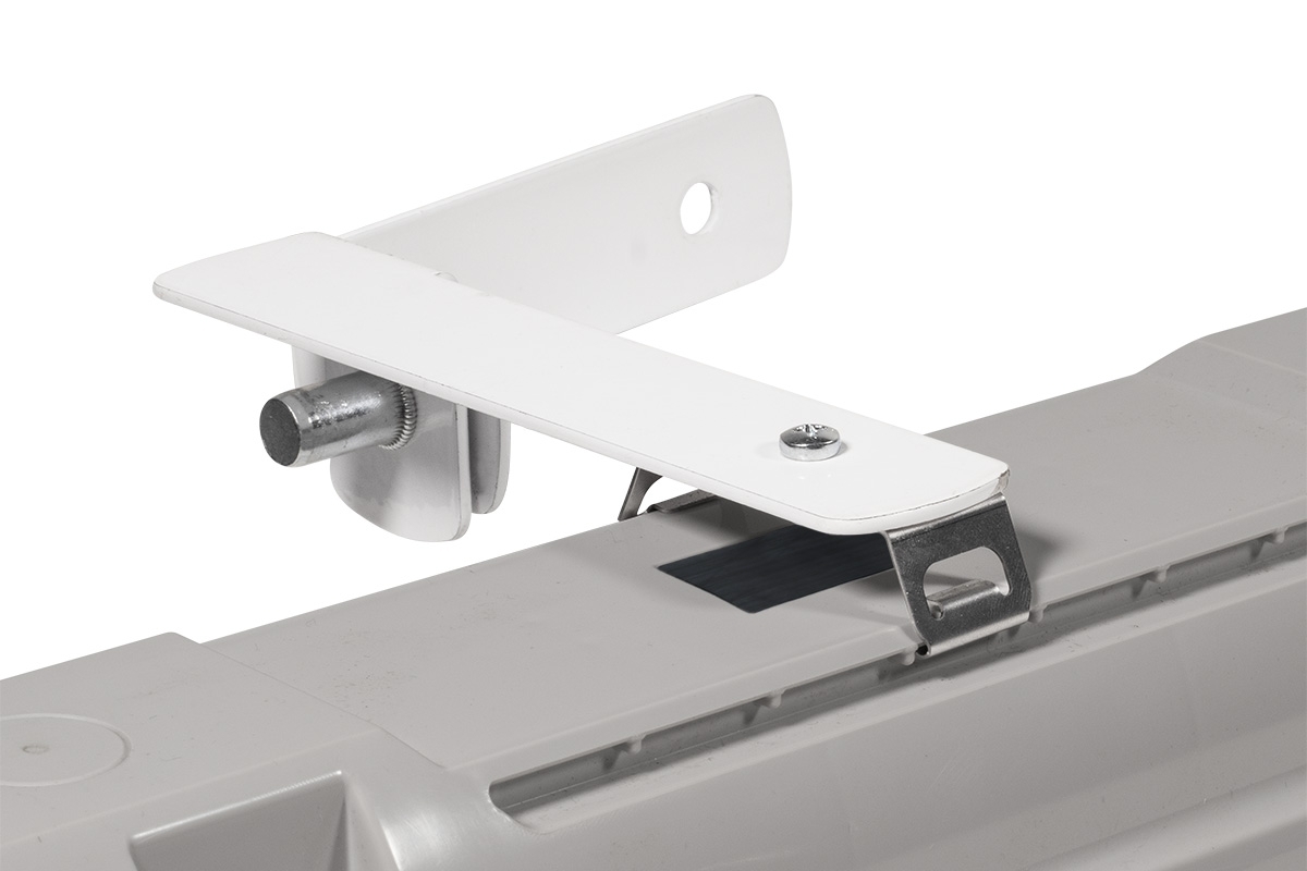 NANOTTICA 1.4ft VP ABS je LED svítidlo určené pro venkovní zastřešené prostory a chemicky náročné provozy, kde je vyžadována vysoká odolnost a spolehlivost. Svítidlo využívá čirý AC difuzor s patentovanou nanooptikou, která zajišťuje přesné směrování světla a velmi nízký index oslnění. Podle technického listu (strana 1) poskytuje varianta 4400/840 světelný tok svítidla 3980 lm při spotřebě 27,3 W (účinnost 146 lm/W). Svítidlo je navrženo pro optimální montážní výšku 3,5 až 8 metrů a nabízí krytí IP66/IP69, mechanickou pevnost IK06 a provozní teplotu −25 až 45 °C. Konstrukce s ventilační membránou eliminuje vznik kondenzátu, což je patrné z technického popisu na straně 1. Základna je vyrobena z tmavě šedého ABS s vysokou chemickou odolností, difuzor z čirého akrylátu (AC). Součástí balení jsou nerez háčky a nerez spony, jak ukazuje obrázek na straně 2. Variabilní rozteč zavěšení 700–960 mm umožňuje snadnou instalaci i na stávající montážní prvky.