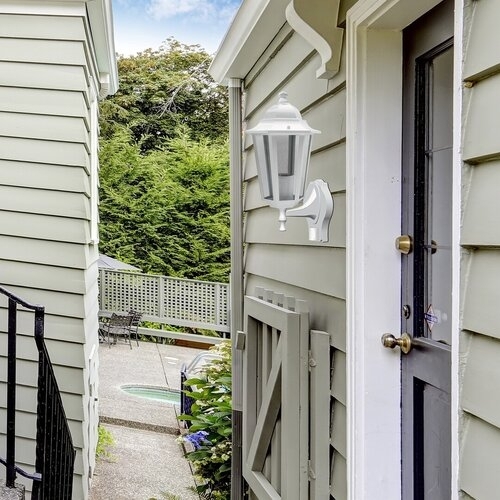 Venkovní nástěnné svítidlo z řady VELENCE. Vhodná pro osvětlení venkovních prostor, teras, zimních zahrad, skalek a zahrad. S pohybovým senzorem.