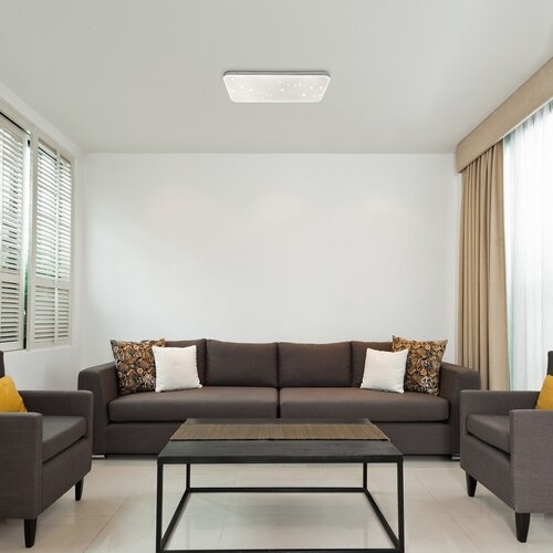 Stropní svítidlo Oscar s hvězdným efektem bude dokonalým doplňkem k zařízení každého moderního obývacího pokoje, ložnice nebo pracovny. Díky jasnému designu a bílé barvě téměř nepostřehnutelně splývá s barvou světla stropu. Čtvercové svítidlo se zaoblenými rohy je vyrobeno z kovu v chromové barvě a je doplněno bílým akrylovým stínidlem. Svítidlo Oscar vyzařující přirozené bílé světlo obsahuje energeticky úsporný zabudovaný LED světelný zdroj s výkonem 36 W, světelným tokem 2 520 lumenů a barevnou teplotou 4 000 K. Životnost inteligentní žárovky je celkem působivá: 50 000 hodin! Rozměry tohoto stropního svítidla ve tvaru kvádru jsou následující: jeho delší strana měří 635 mm, kratší strana 330 mm a vzdálenost svítidla od stropu je pouze 60 mm. Na vynikající stropní svítidlo Oscar nabízíme 5letou záruku.