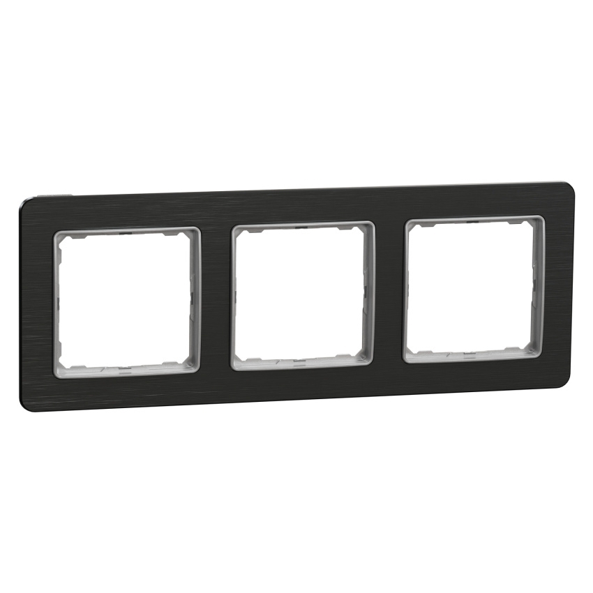 Trojnásobný krycí rámeček Schneider Electric Sedna Design Elements SDD372803U je určený pro instalaci tří modulů v zapuštěné montáži. Konstrukce umožňuje horizontální i vertikální instalaci a rámeček lze použít také jako nástěnné zařízení ve spojení s povrchovými instalačními krabicemi. Je vyroben z termoplastu ABS stabilizovaného proti UV záření, má povrchovou úpravu Brushed titanium (Pantone 10397C) s lesklým UV potiskem a rozměry 85 × 227 × 10 mm. Základní stupeň krytí je IP20, přičemž v kombinaci s kompatibilními vypínači a zásuvkami může sestava dosáhnout krytí IP44 a mechanické odolnosti IK02. Moderní linie a precizní zpracování odpovídají designové řadě Sedna Design Elements.