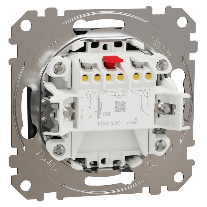 Sériový spínač Schneider Electric Sedna Design Elements SDD172105U je provedení s dvěma obvody a je určen pro zapuštěnou montáž. Přístroj je vybaven bezšroubovými svorkami pro vodiče o průřezu 1,5–2,5 mm2 a umožňuje upevnění pomocí rozpěrek v rozsahu 52–67 mm nebo pomocí šroubů. Jmenovitý proud spínače je 10AX a jmenovité pracovní napětí 250 V AC při frekvenci 50 Hz. Kryt je z polykarbonátu s povrchovým provedením brushed titanium (Pantone 10397C), lesklou úpravou a UV potiskem. Mechanismus je elektromechanický s kolébkovým ovládáním. Rozměry přístroje jsou 73 × 73 × 37 mm. Stupeň krytí odpovídá IP20 a mechanická odolnost je IK02. Spínač splňuje normu IEC 60669-1.