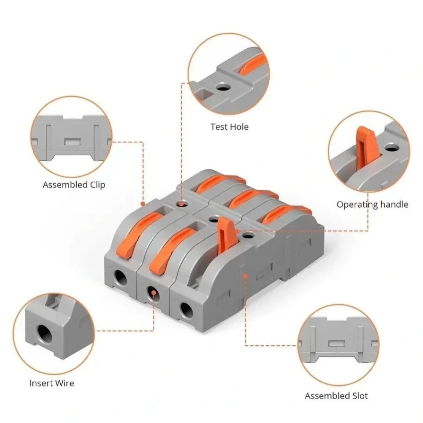 SONOFF D1-1 spojovací svorky umožňují rychlé a bezpečné zapojení vodičů bez použití pásky či šroubovacích matic díky pákovému mechanismu. Izolační pouzdro z nehořlavého PC materiálu zajišťuje odolnost proti teplu a korozi, zatímco měděné kontakty garantují spolehlivý elektrický kontakt. Svorky jsou kompatibilní s pevnými vodiči o průřezu 0,5–4,0 mm? a lankovými vodiči 0,5–2,5 mm?, což umožňuje široké využití v elektroinstalacích, automobilech i průmyslu.