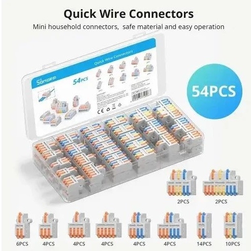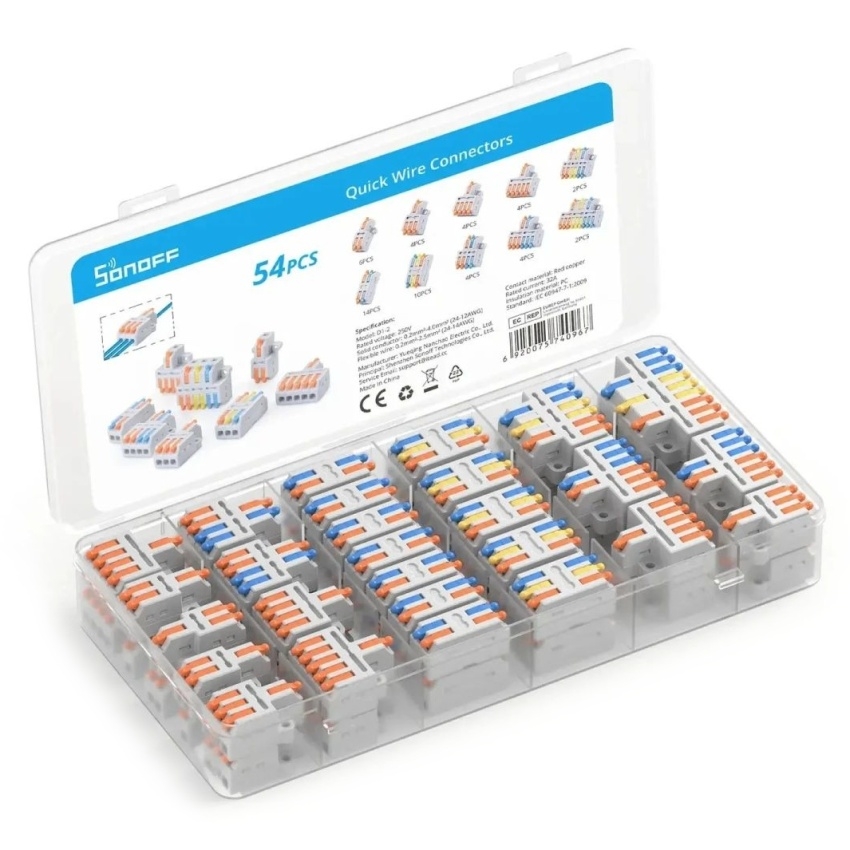 SONOFF D1-2 rychlospojky na vodiče umožňují beznástrojové, bezpečné a rychlé spojování vodičů s vysokou vodivostí a ohnivzdorným krytem. Podporují pevné vodiče 0,2–4,0 mm? a lankové vodiče 0,2–2,5 mm? s maximálním proudem 32 A a napětím 250 V.
