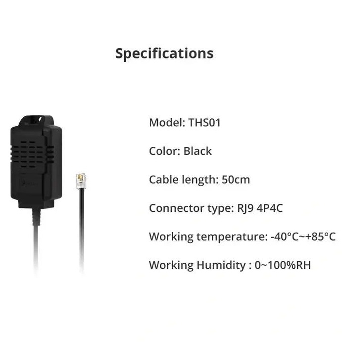 SONOFF THS01 senzor teploty a vlhkosti s RJ9 4P4C konektorem poskytuje přesné a spolehlivé měření teploty v rozsahu -40? až +85? a vlhkosti od 0 % do 100 % RH. Díky plug-and-play instalaci a podpoře prodloužení kabelu SONOFF RL560 až do 60 metrů umožňuje snadné připojení k chytrým ovladačům série TH Elite a TH Origin. Kompaktní design a stabilní přenos dat zajišťují efektivní automatizaci vytápění, chlazení a větrání v interiérech i chráněných venkovních prostorách.