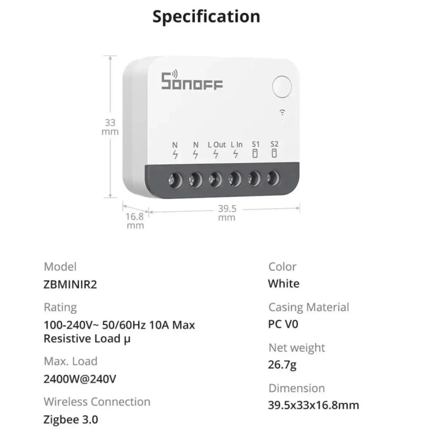 SONOFF ZBMINIR2 EXTREME ZIGBEE SMART SPÍNAČ (VYŽADUJE NEUTRÁLNÍ VODIČ)