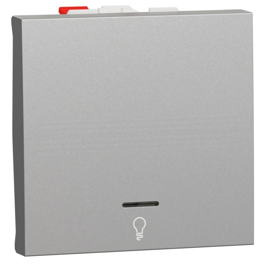 Schneider Electric Nová Unica tlačítkový ovládač NU320630LN je mechanismus v barvě aluminium Připojovací svorky tohoto tlačítkového spínače jsou bezšroubové. Je vyrobeno z Cu. Zn37, PBT (polybutylen tereftalát) GF30, PC (polykarbonát) GF10 FR, termoplastický materiál stabilizovaný ABS-UV, je tento tlačítkový spínač spolehlivý a odolný. Jeho šířka je 45 mm, výška 45 mm, hloubka 34,25 mm, hloubka zapuštění 21,15 mm, A výrobek váží 0,0252 kg. Kromě toho neobsahuje halogeny, což je prospěšné pro vaše zdraví. Je vybaven orientační kontrolkou LED. Způsob upevnění je pomocí klipů. Tento výrobek se prodává po 10 kusech. Navíc vyhovuje normě IEC 60669-1, směrnici LV, Ro. HS. Získal také certifikát AENOR, CE, EAC, NF. Také je šetrné k životnímu prostředí, přičemž je odolné vůči UV záření, acetonu, alkoholu, čpavku, bělidlu, tekutému mýdlu, oleji, benzínu, kapalině na čištění oken. Dielektrická pevnost, která znamená elektrickou pevnost jeho izolantu, je 2000 V. A jeho jmenovitý proud je 10 A. Tento tlačítkový spínač také neobsahuje SVHC (látky vzbuzující mimořádné obavy). Jeho povrchová úprava je práškově lakovaná.
