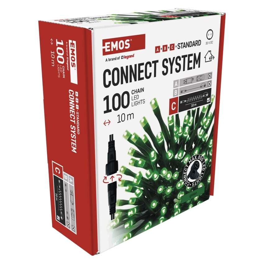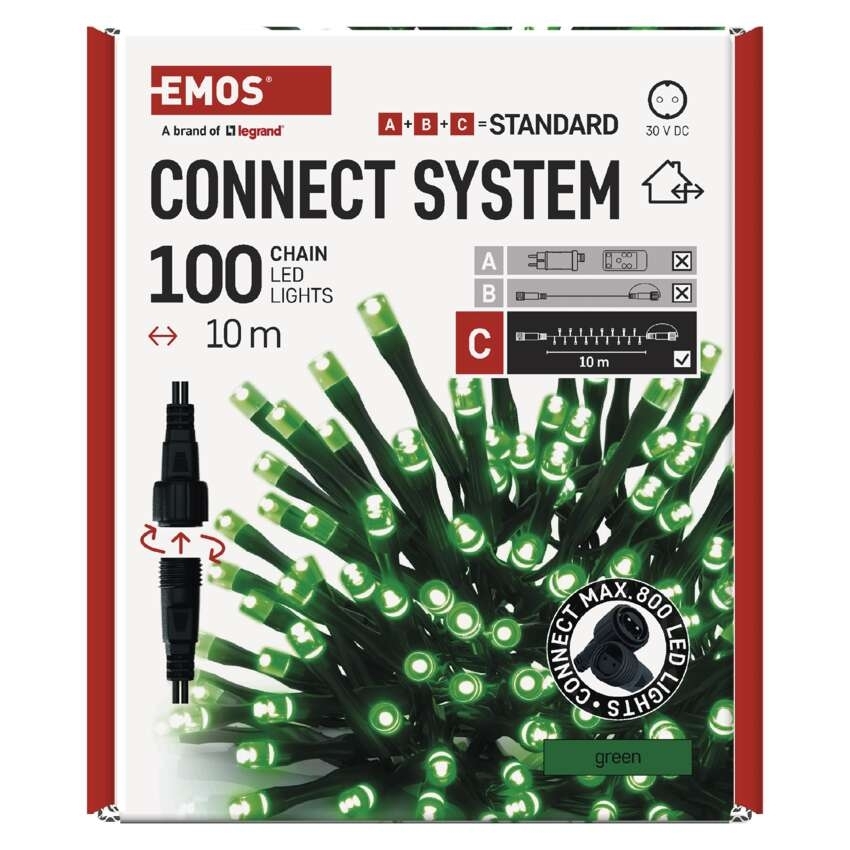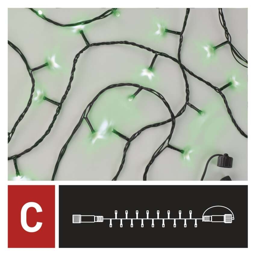 EMOS Standard LED spojovací vánoční řetěz, 10 m, venkovní i vnitřní, zelená