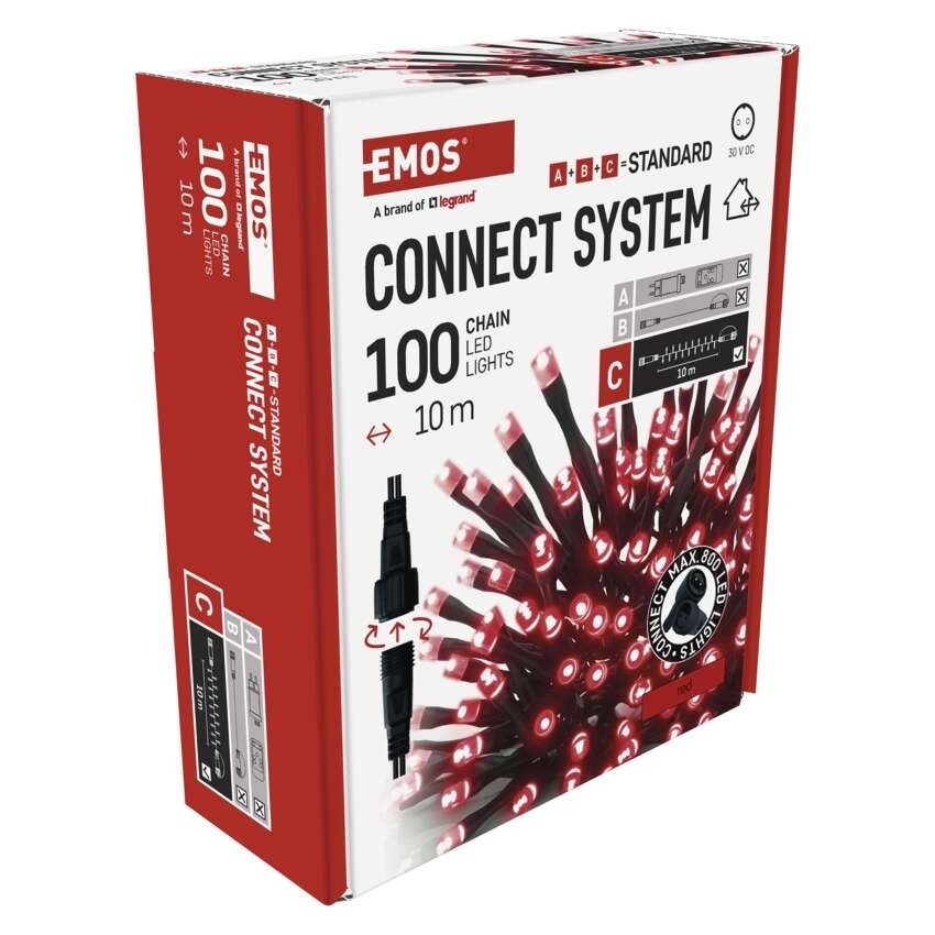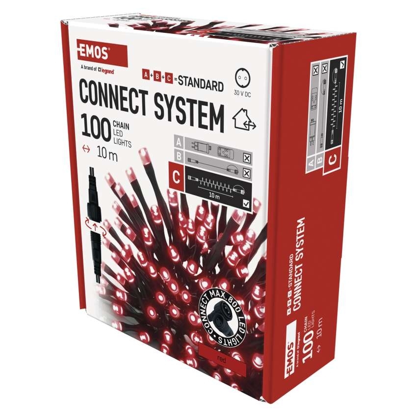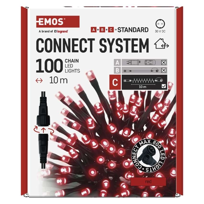 Standard LED vánoční spojovací řetěz EMOS D1AR01 100LED 10 m červená bez zdroje
