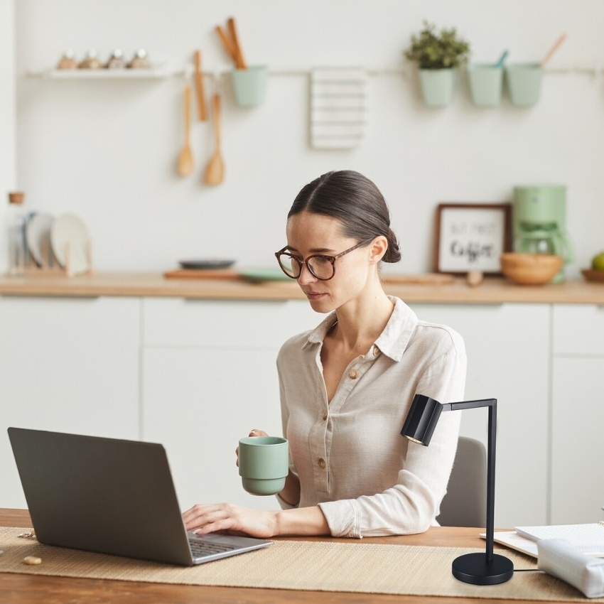Moderní stolní lampa Rabalux Karter 73029 je praktickým a stylovým doplňkem pro obývací pokoj, ložnici nebo pracovnu. Tělo lampy je vyrobeno z kovu v matné černé barvě a doplněno válcovým hliníkovým stínidlem ve stejném odstínu. Lampa stojí na pevném kulatém podstavci a její hlava je výškově nastavitelná v rozsahu 90°, což umožňuje přizpůsobit směr světla podle potřeby. Je určena pro jednu žárovku s paticí GU10 a maximálním výkonem 5 W. Svítidlo je vybaveno kabelovým spínačem a dodává se bez světelného zdroje.