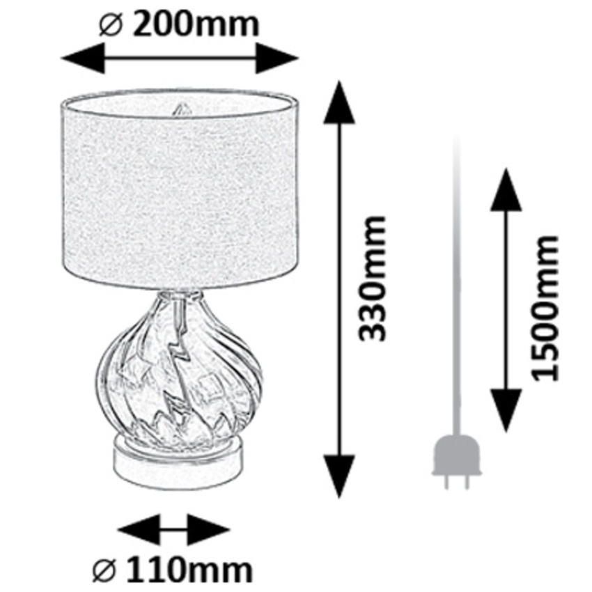 Stolní lampa Rabalux Pirelo 74034 zaujme svým elegantním designem a nadčasovou kombinací kouřového skla a černého textilu. Tělo lampy má tvar cibulové kupole a je vyrobeno z kouřového skla se zkrouceným vzorem, který dodává celkovému vzhledu jemnou dynamiku. Válcovité stínidlo z černé textilie je otevřené nahoře i dole a vytváří příjemné rozptýlené světlo. Lampa je doplněna kulatou dekorativní základnou v barvě ladící se zbytkem konstrukce. Ideální jako doplňkové nebo náladové osvětlení do obývacího pokoje či ložnice. Lampa se ovládá kabelovým vypínačem a je určena pro jednu žárovku s paticí E14 a maximálním příkonem 25 W. Dodává se bez světelného zdroje.