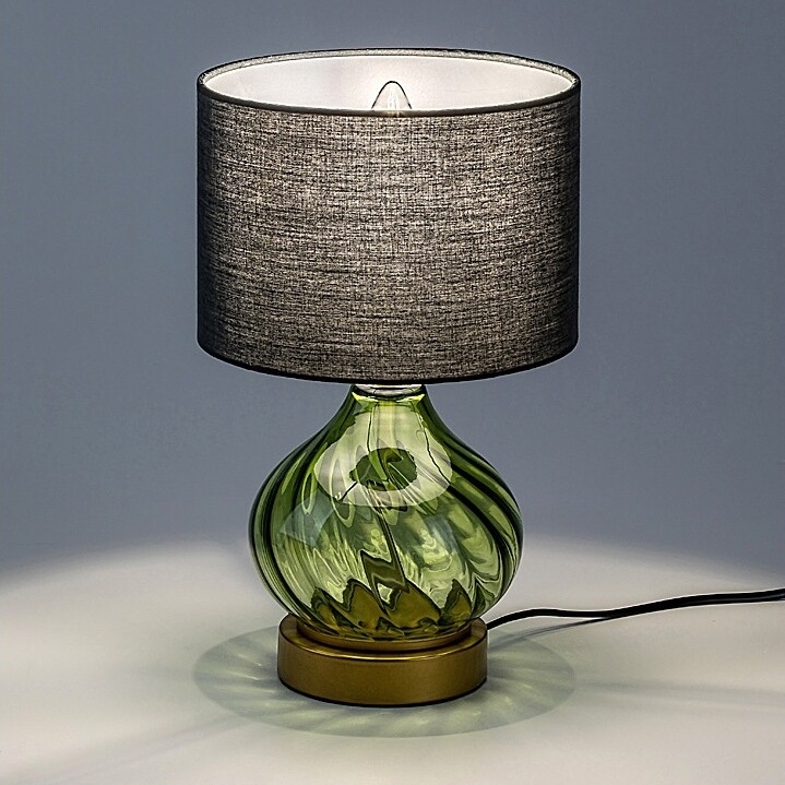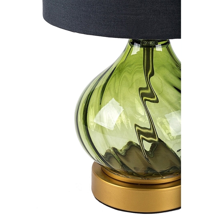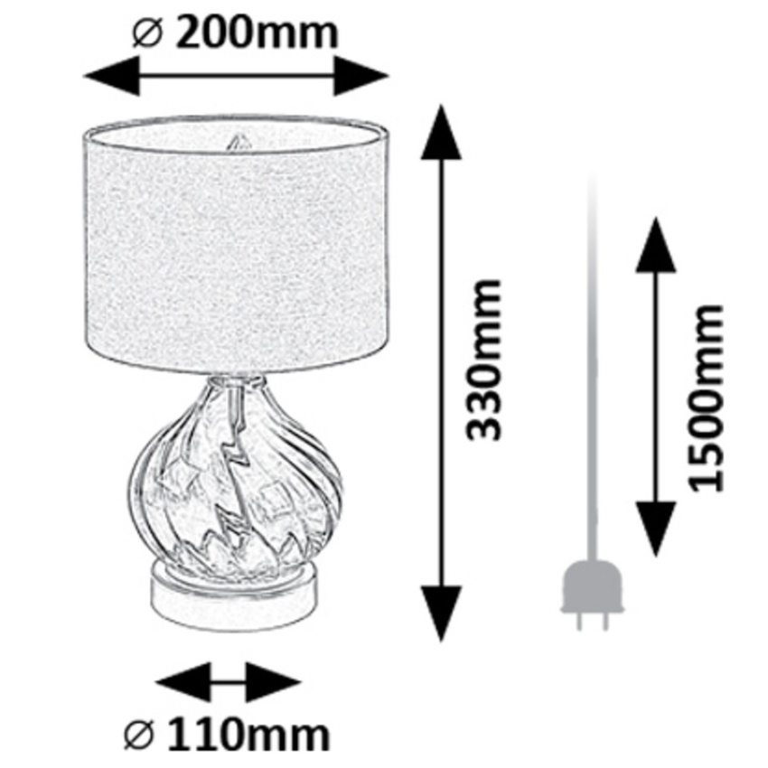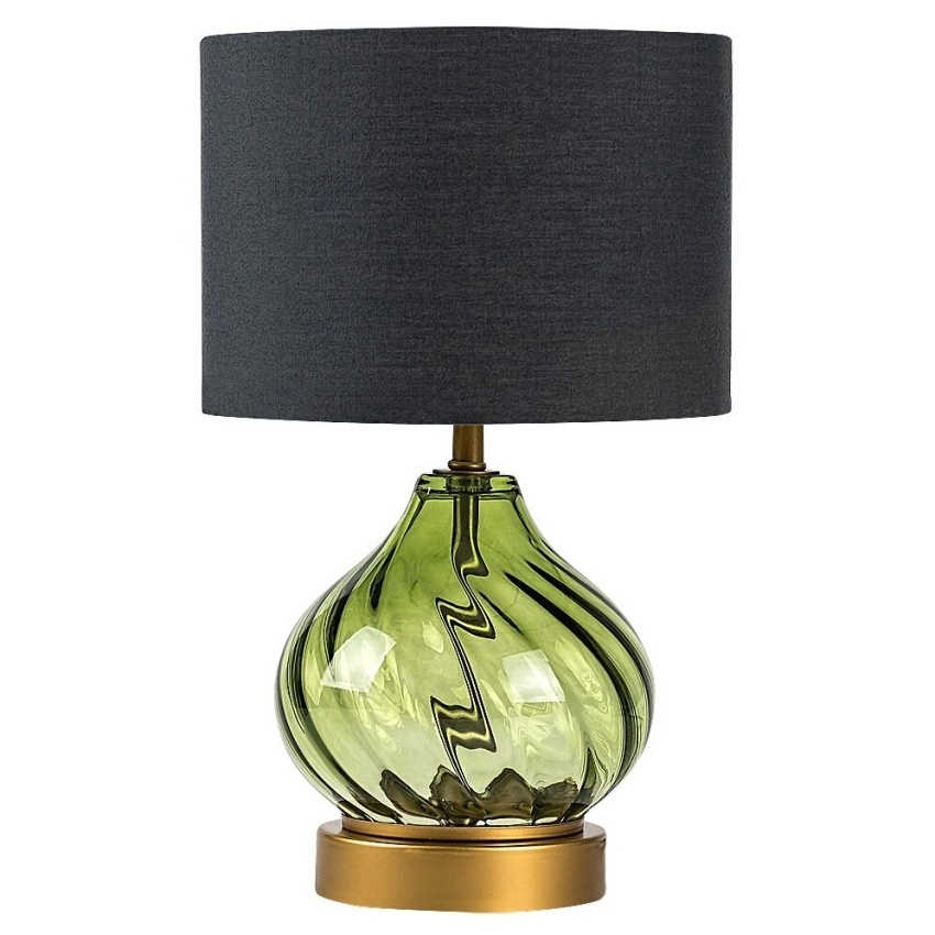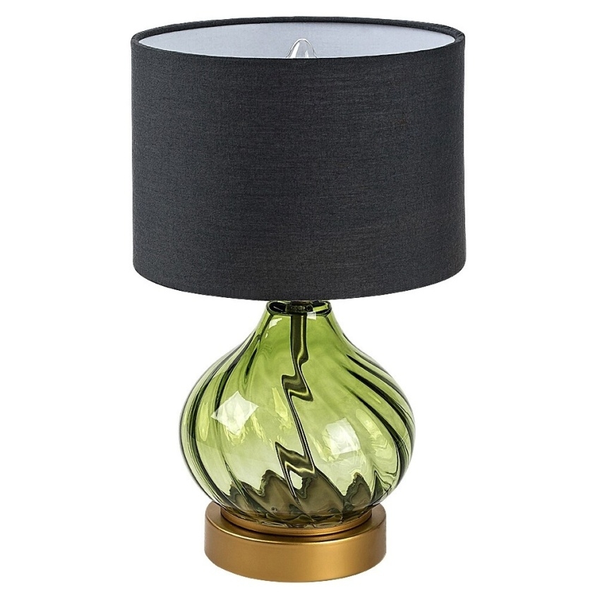 Stolní lampa Rabalux Pirelo 74033 zaujme svým originálním designem a elegantní barevnou kombinací. Její základ tvoří tělo ze zeleného skla s jemným zkrouceným vzorem ve tvaru cibulové kupole, doplněné o černé válcovité textilní stínidlo otevřené nahoře i dole. Celek dotváří kulatá zlatá základna, která dodává lampě luxusní vzhled. Tento stylový model je ideální jako dekorativní prvek do obývacího pokoje, ložnice nebo pracovny, kde poskytne jemné a útulné osvětlení. Lampa se ovládá kabelovým vypínačem a je určena pro jednu žárovku s paticí E14 a maximálním příkonem 25 W. Dodává se bez světelného zdroje.