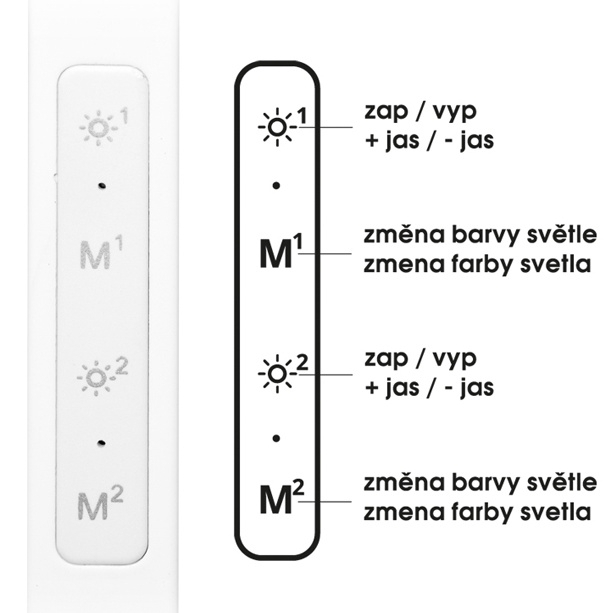 - Pomocí ovládacího panelu na zadní části lampičky je možné regulovat jas i požadovanou teplotu chromatičnosti v rozmezí 3000-6000K.