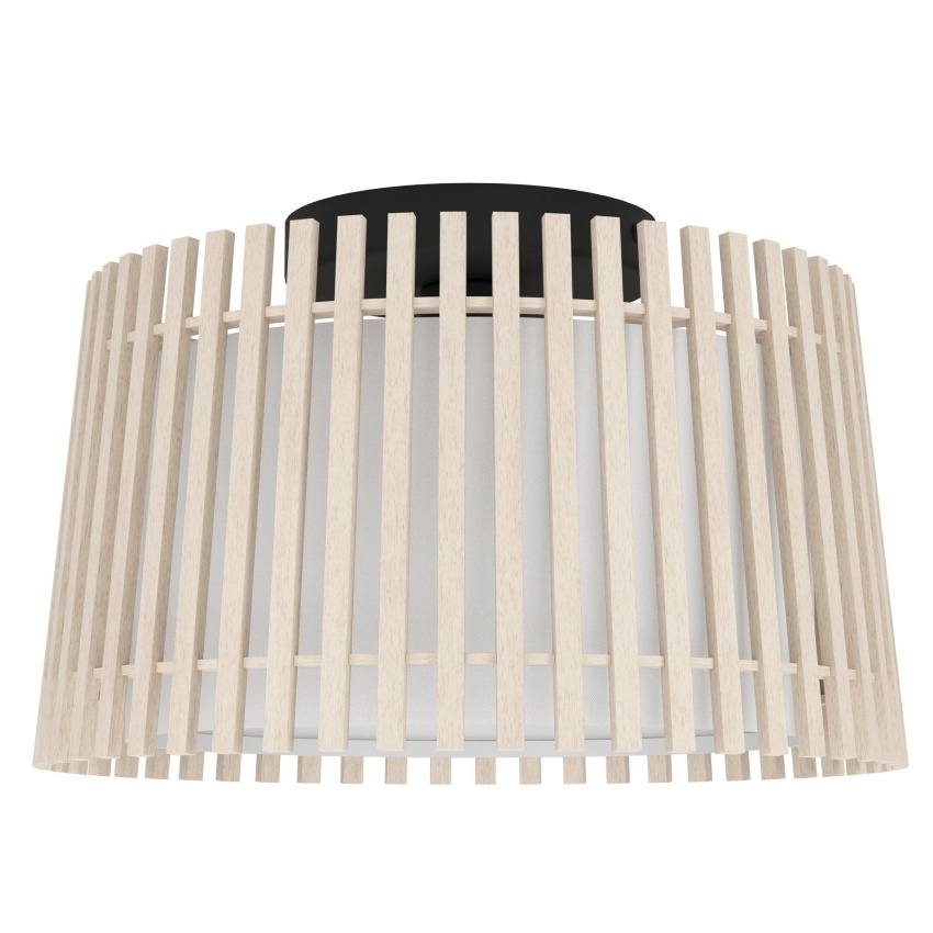 Stropní svítidlo EGLO FATTORIA 900901 přináší do interiéru přírodní a útulnou atmosféru. Je tvořeno dvěma vnořenými stínidly – vnější část je vyrobena ze světlého pravého dřeva a vnitřní z bílého textilu. Společně vytvářejí elegantní kontrast a po rozsvícení fascinující hry světla a stínu na stěnách i stropě. Svítidlo je doplněno černým kovovým přístřeškem a ideálně se hodí do obývacího pokoje, ložnice, jídelny či chodby. Žárovka není součástí balení, použít lze jakoukoliv s paticí E27. Pro rovnoměrné světlo jsou doporučeny žárovky z opálového skla.