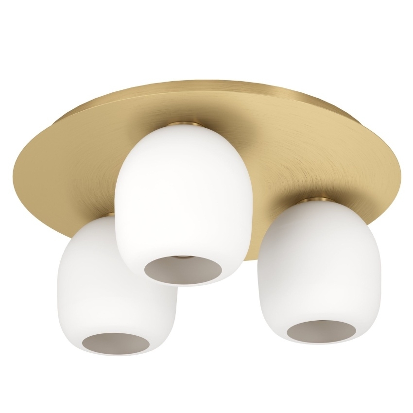 Stropní svítidlo MANZANARES zaujme svým moderním a čistým designem. Skládá se z kulaté základny z broušené mosazi a tří jemně zaoblených stínidel z bílého opálového matného skla. Díky neutrálním barvám a elegantnímu zpracování se snadno začlení do různých interiérů a poskytne příjemné a rovnoměrné osvětlení. Ideální pro použití v kuchyni, obývacím pokoji, ložnici nebo předsíni. Žárovky nejsou součástí balení, což vám umožňuje zvolit si světelný zdroj dle svých potřeb.
