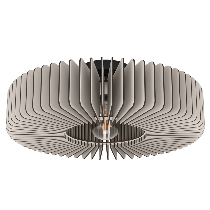 Stropní svítidlo EGLO PALOMBAIA zaujme originálním designem v oblíbeném stylu Scandi. Je vybaveno kulatým stínidlem z šedých dřevěných lamel, které po rozsvícení vytvářejí fascinující hru světla a stínu. Díky čistému a modernímu vzhledu se hodí do různých interiérů a přináší útulné osvětlení do kuchyně, obývacího pokoje, ložnice nebo chodby. Žárovka není součástí balení, svítidlo je vhodné pro všechny světelné zdroje s paticí E27.