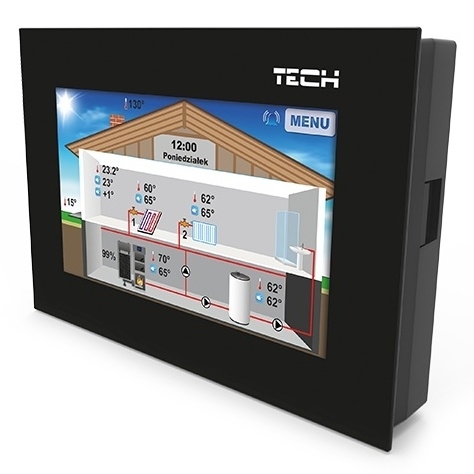 TECH CONTROLLERS TERMOSTAT EU-281 POKOJOVÝ S RS KOMUNIKACÍ DOTYKOVÝ BAREVNÝ DISPLEJ BARVA ČERNÁ
