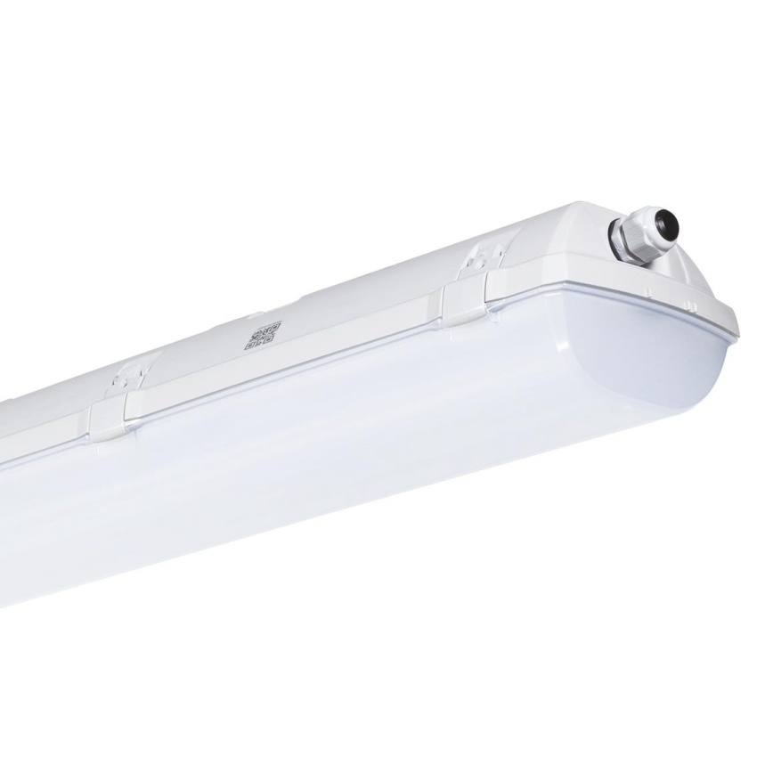 LED svítidlo TREVOS FUTURA 2.5FT PCC AL 8000/840 M3HAT je odolné průmyslové svítidlo s vysokou účinností 162 lm/W a světelným tokem 7830 lm. Konstrukce z polykarbonátu s hliníkovými chladiči zajišťuje vysokou mechanickou pevnost, UV stabilitu a ochranu proti prachu a vodě (IP66, IK10). Svítidlo je vybaveno nouzovým záložním zdrojem s autotestem a provozní dobou 3 hodiny, který zajišťuje světelný tok 440 lm při výpadku napájení. Je vhodné pro použití v průmyslových, logistických i potravinářských provozech s certifikací HACCP.