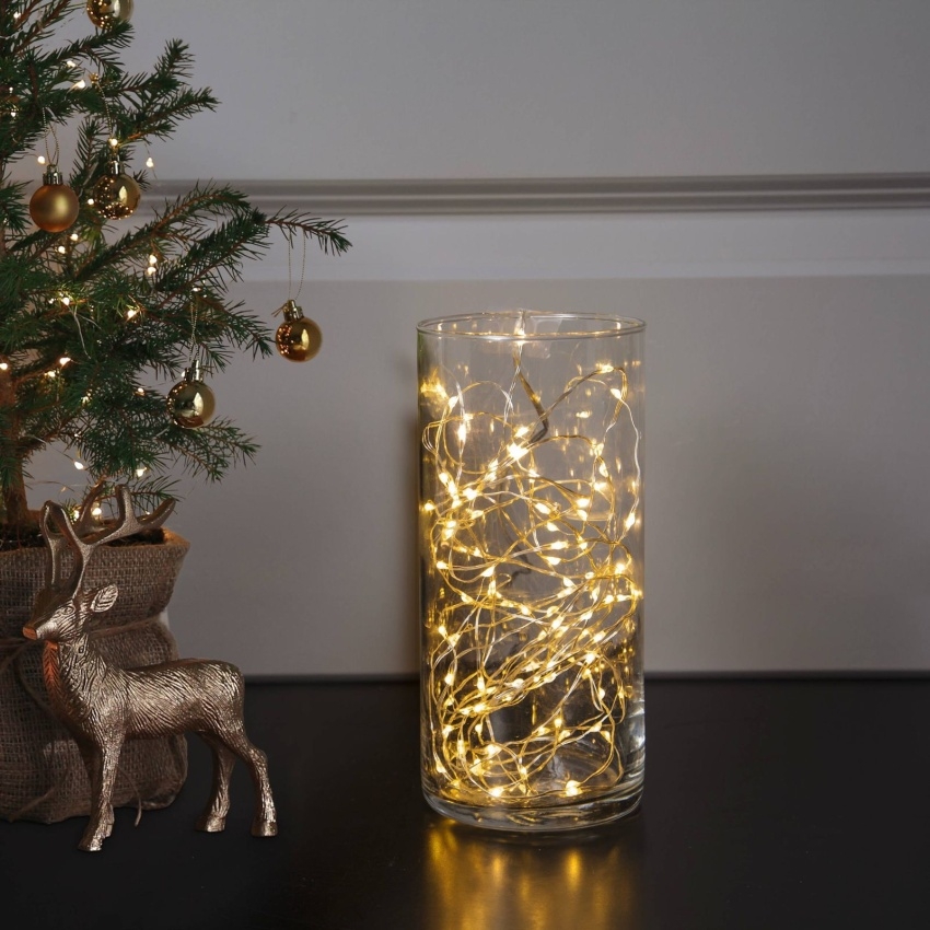 Vánoční dekorace s LED osvětlením. Světelný LED řetěz je vyroben z kovu a má 100 světelných LED zdrojů. Délka činí 500 cm