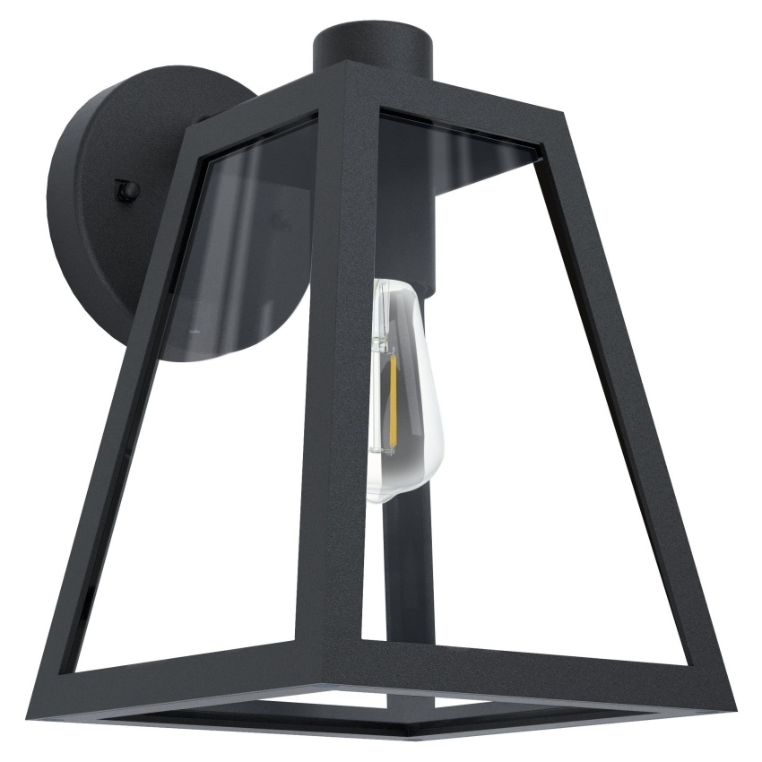 Venkovní lucerna v moderním provedení. Elegantní kombinace černé a čirého skla. Jednoduché, čisté linie, nadčasovost. Umístěte ke vstupu do domu nebo bytu, na venkovní chodby, balkóny, verandy, na pergolu nebo terasu. Instalujte na stěny domu, garáže, na zdi lemující chodníky nebo příjezdové komunikace.