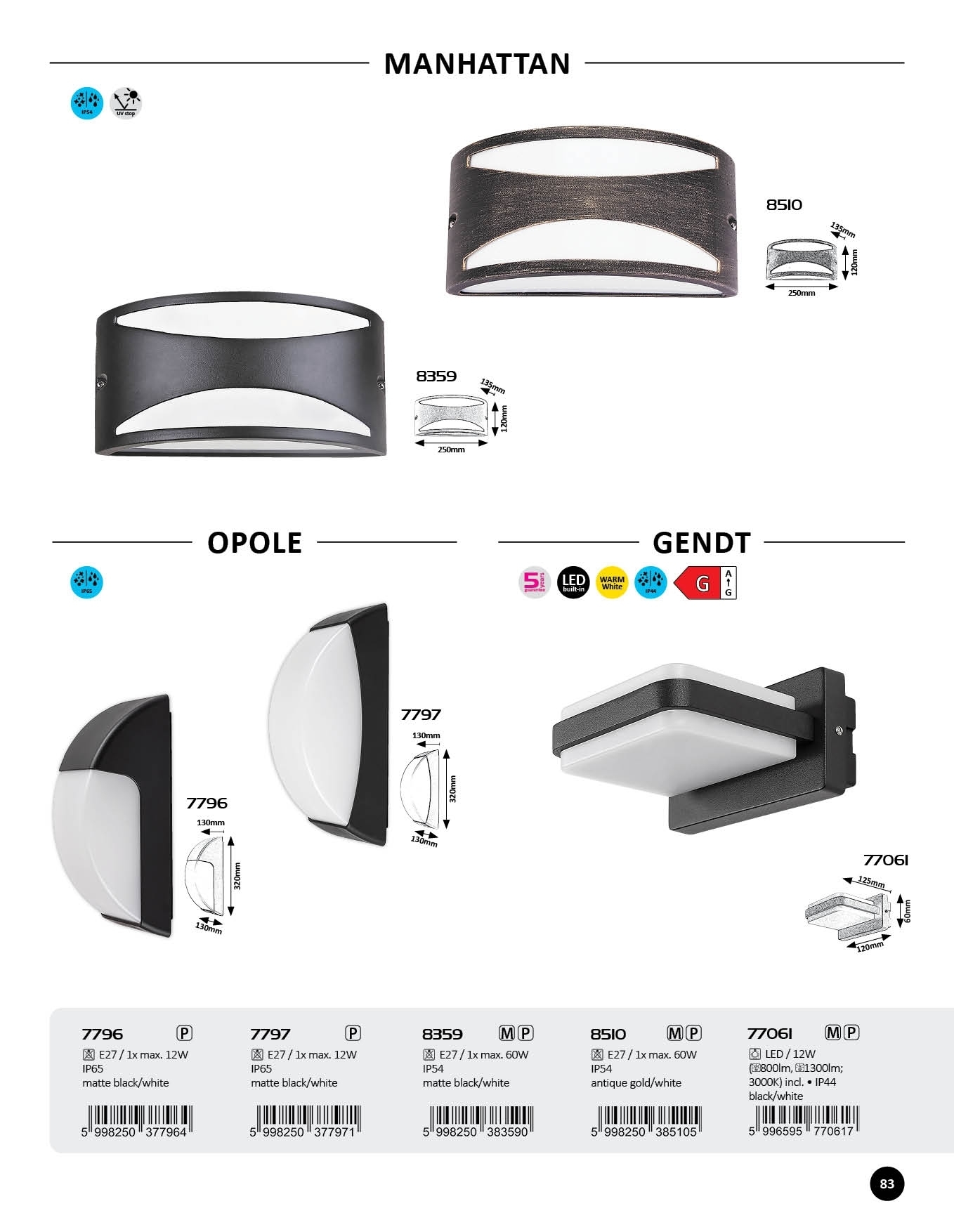 Venkovní nástěnné svítidlo Rabalux Opole je vyrobeno z plastu a má čtvercový tvar se zaoblenými rohy. Svítidlo je osazeno jednou paticí E27 pro světelný zdroj s maximálním příkonem 12 W, přičemž světelný zdroj není součástí balení. Konstrukce má šířku 130 mm, výšku 320 mm a vzdálenost od stěny 130 mm, je určena pro napájení 230 V AC, 50 Hz a disponuje stupněm krytí IP65.