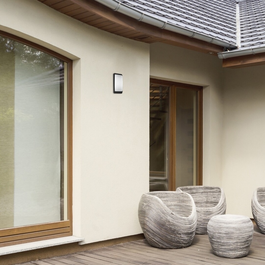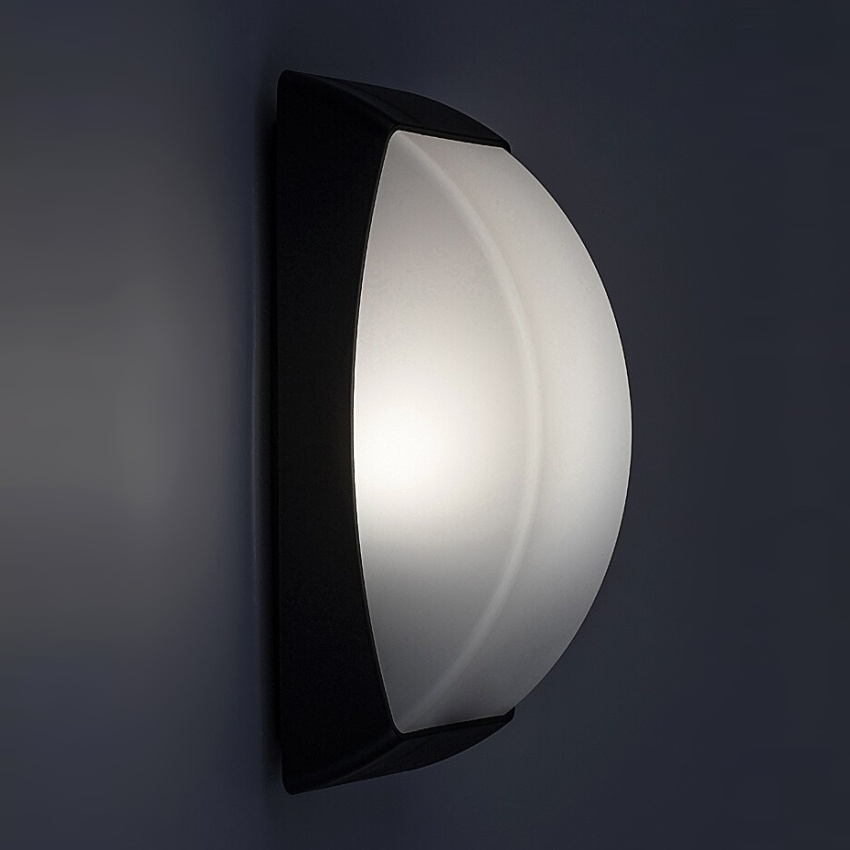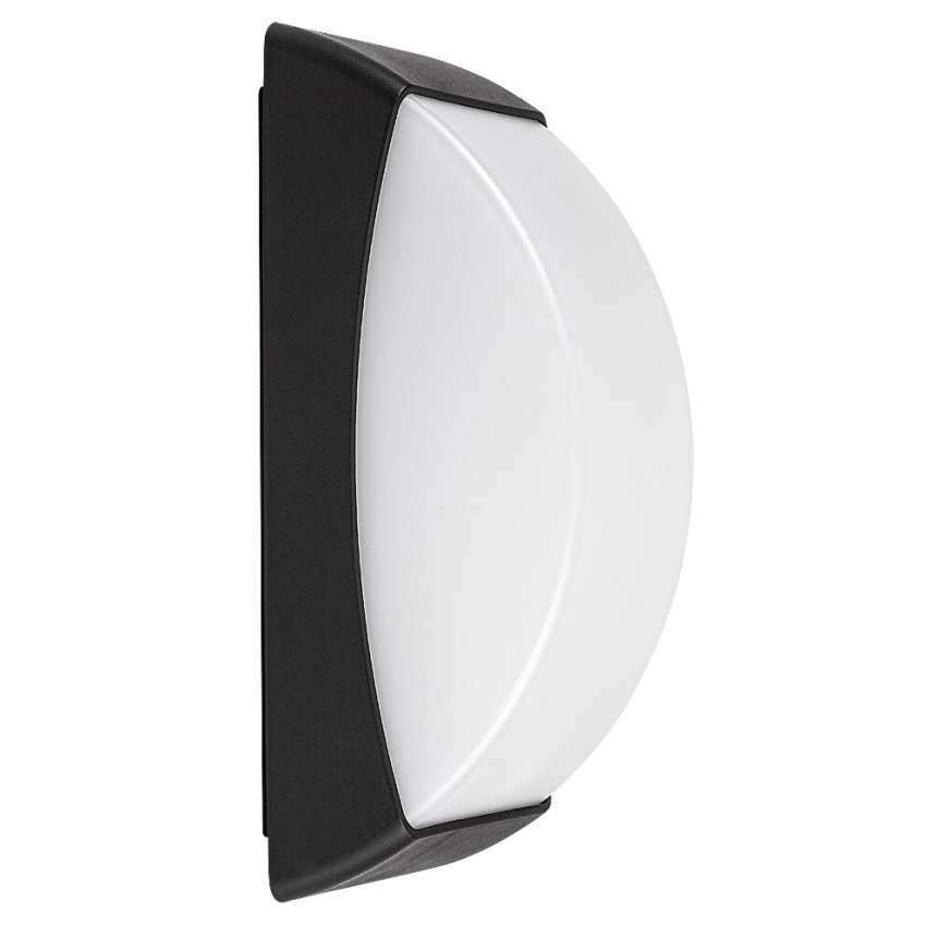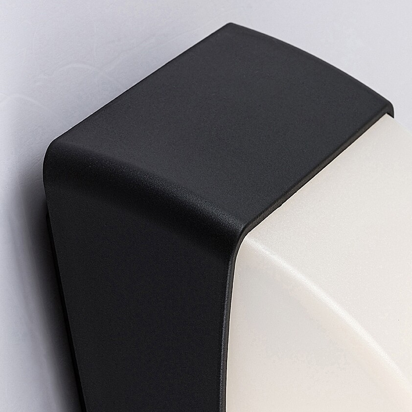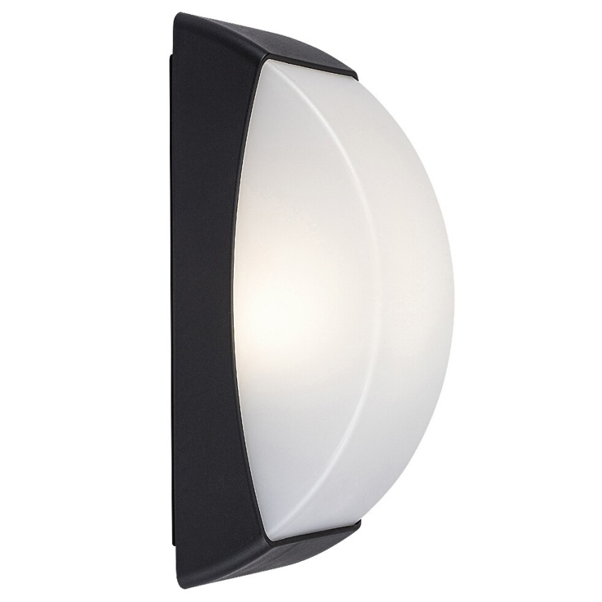 Venkovní nástěnné svítidlo Rabalux Opole v matně černém provedení s paticí E27 a bílým plastovým stínidlem.