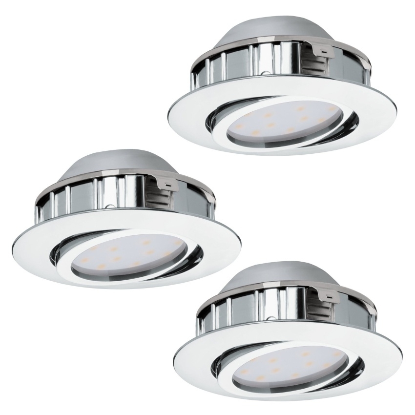 Vestavná LED svítidla EGLO PINEDA 95858 (set 3 ks), 3×5,5 W, 1080 lm, 3000 K (teplá bílá), průměr 84 mm, chrom, IP20.