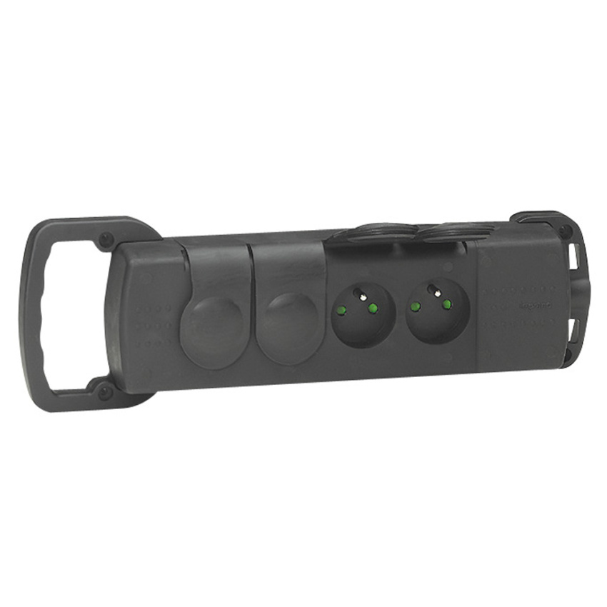 Zásuvka pryžová čtyřnásobná s rukojetí LEGRAND 050553 s víčky 4x2P+PE guma IP44 černá