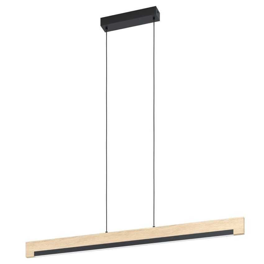 Designové závěsné LED svítidlo EGLO CAMACHO (901737) s výkonem 25,5 W, teplou bílou barvou světla (3000 K), světelným tokem 3100 lm a stmívatelnou funkcí. Kombinace černé oceli a dřeva pro moderní interiéry.