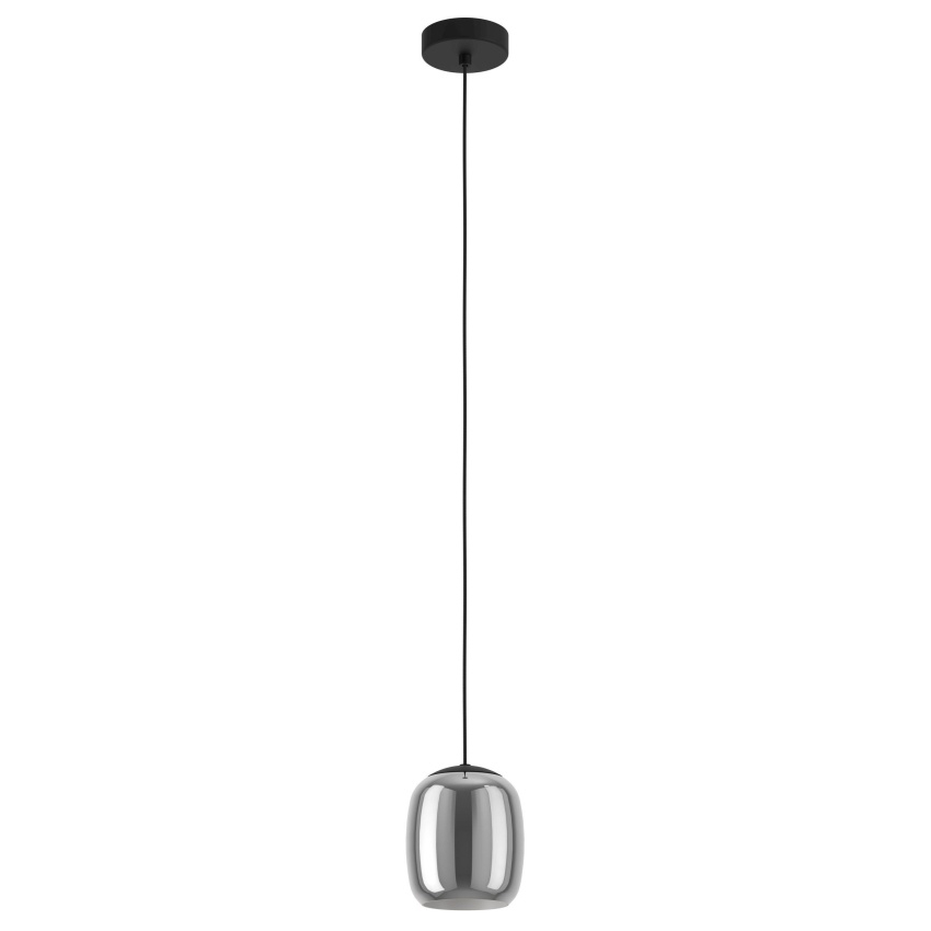 Závěsné svítidlo EGLO Ciampino 901722 vyniká elegantní kombinací černého kovového těla a šedého kouřového skleněného stínidla. Díky svému modernímu designu působí stylově a zároveň útulně, což jej činí ideální volbou pro obývací pokoje, jídelny i ložnice. S průměrem 150 mm a výškou 1100 mm se hodí jako samostatný dekorativní prvek nebo v kombinaci s více svítidly nad jídelní stůl či barový pult. Patice E27 umožňuje použití různých světelných zdrojů až do výkonu 28 W. Svítidlo je určeno pro interiérové použití s krytím IP20.