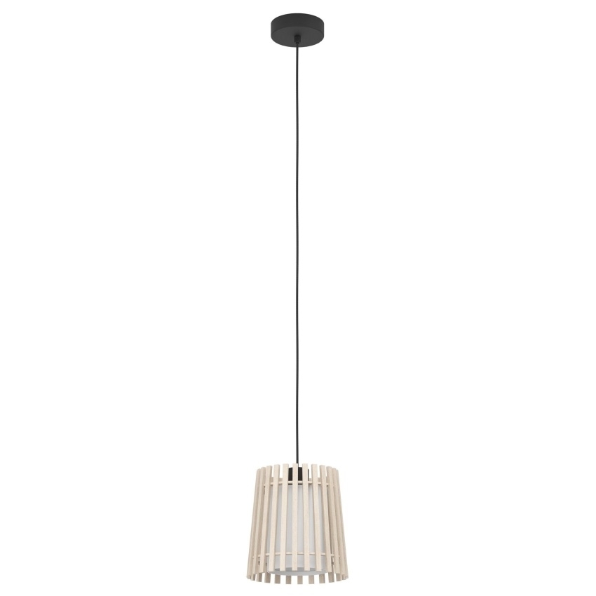 Závěsné svítidlo EGLO FATTORIA 900902 přináší do interiéru přírodní a útulnou atmosféru. Je tvořeno dvěma vnořenými stínidly – vnější část je vyrobena ze světlého pravého dřeva a vnitřní z bílého textilu. Stínidlo je zavěšeno na černém textilním kabelu a doplněno kulatým kovovým přístřeškem ve stejné barvě. Po rozsvícení vytváří svítidlo na stropě a stěnách fascinující hry světla a stínu. Skvěle se hodí nad jídelní stůl, do obývacího pokoje či dalších prostor laděných v přírodním nebo boho stylu. Žárovka není součástí balení, použít lze jakoukoliv s paticí E27. Pro rovnoměrné osvětlení jsou doporučeny žárovky z opálového skla.