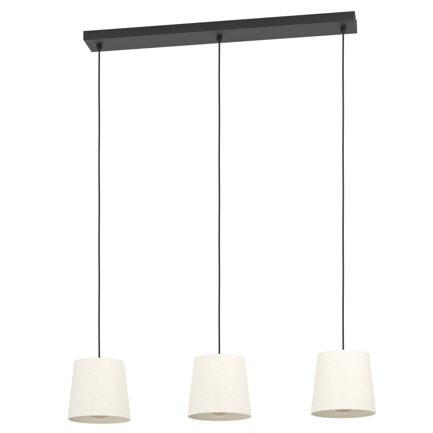 Závěsné svítidlo EGLO Febres 901263 je moderní a stylové svítidlo, které se stane elegantním doplňkem každého interiéru. Černé kovové tělo v kombinaci s bílými textilními stínidly působí kontrastně a zároveň nadčasově. Díky třem paticím E27 nabízí možnost použití různých typů žárovek až do výkonu 60 W, což zajistí dostatečné osvětlení i pro větší místnosti. S rozměry 880 × 180 × 1100 mm se hodí nad jídelní stůl, do obývacího pokoje či reprezentativních prostor. Svítidlo je určeno pro vnitřní použití s krytím IP20.