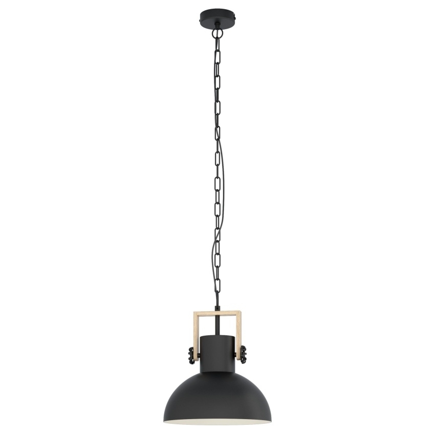 Závěsné svítidlo EGLO LUBENHAM 44056 v kombinaci černého kovu a přírodního dřeva, ideální pro moderní interiéry s industriálním nádechem.