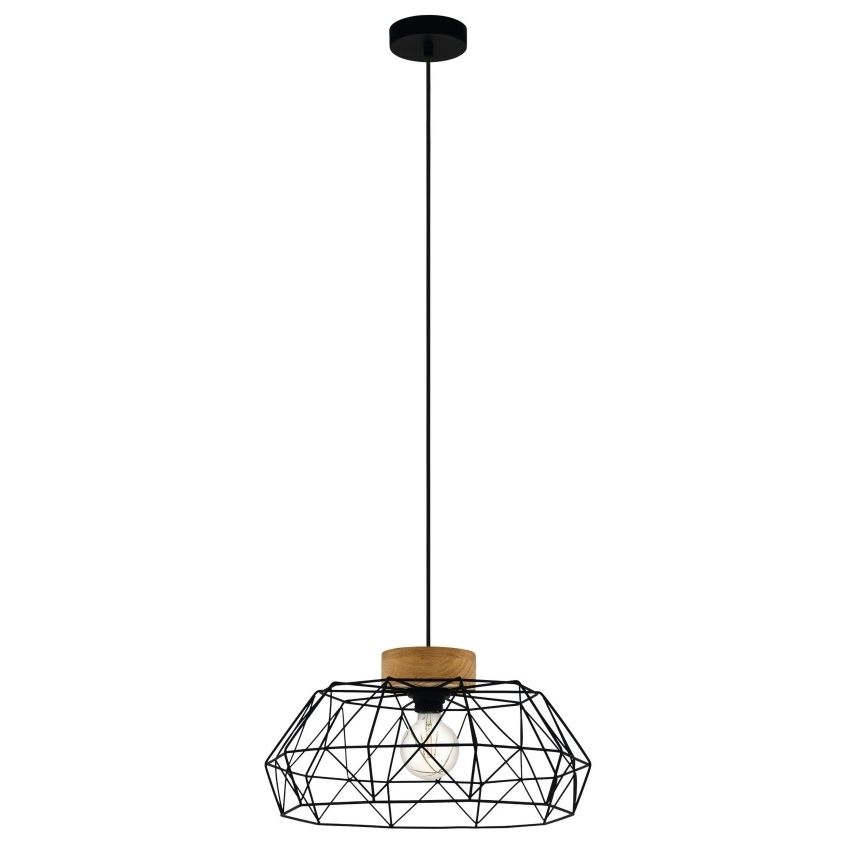 Závěsné svítidlo EGLO PADSTOW 44089 v industriálním stylu s černou ocelí a přírodním dřevem, ideální pro moderní interiéry a nad jídelní stůl.