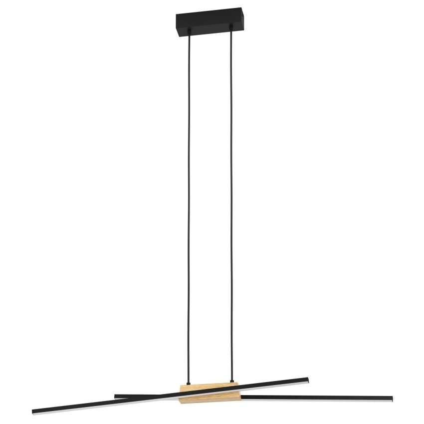 Závěsné LED svítidlo EGLO PANAGRIA 900489 v kombinaci černého kovu a dřeva, 2×13 W, 3120 lm, teplá bílá 3000 K, stmívatelné.