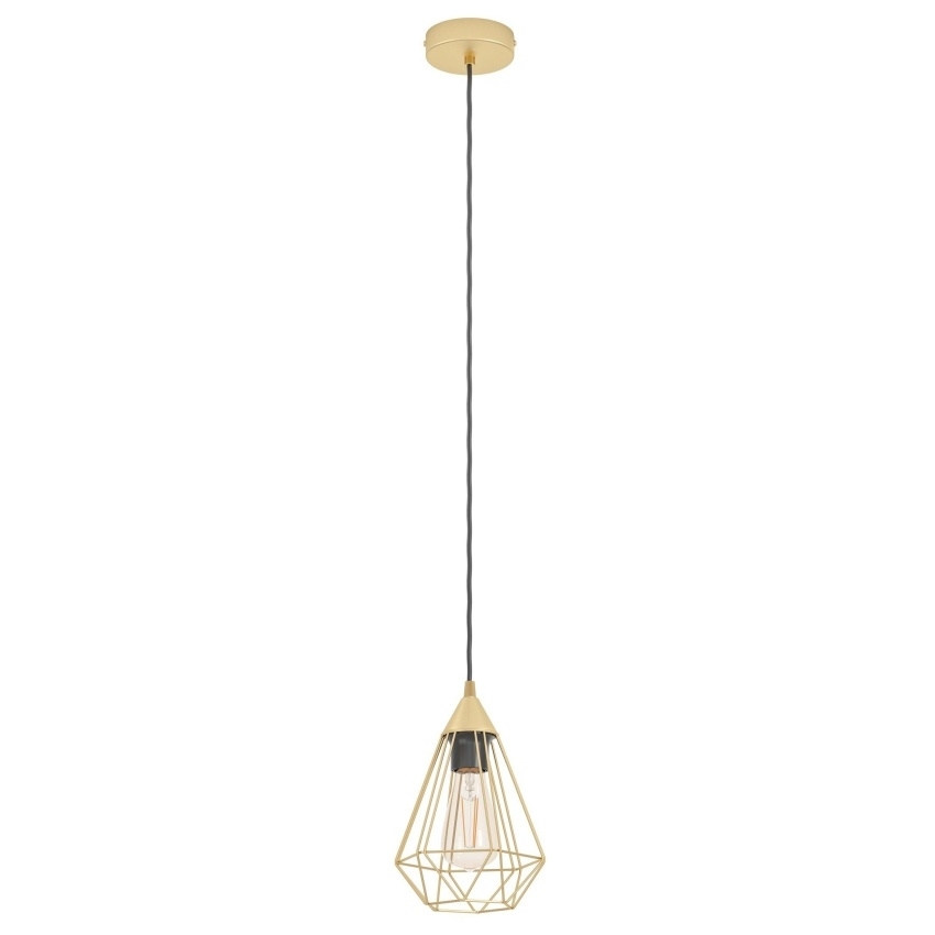 Stylové závěsné svítidlo EGLO TARBES v kartáčované mosazi s jemným drátěným stínidlem, které vynikne výběrem designové žárovky.