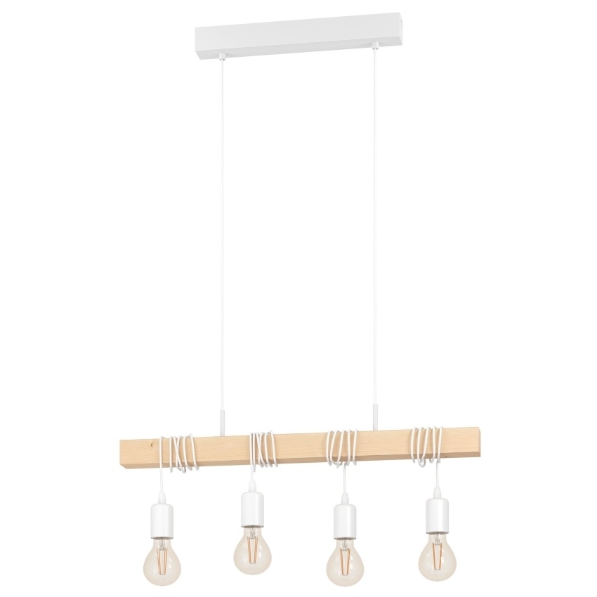 Závěsné svítidlo EGLO TOWNSHEND zaujme elegantní kombinací bílé barvy a hnědého dřeva. Díky svému jednoduchému, ale stylovému designu se skvěle hodí nad jídelní nebo pracovní stůl, do kuchyně, obývacího pokoje či ložnice. Otevřená konstrukce umožňuje, aby žárovky vynikly jako součást designu, a jejich výběr tak ovlivní celkový vzhled svítidla. Lustr má délku 70 cm a je vybaven čtyřmi paticemi E27 pro žárovky s maximálním výkonem 60 W.