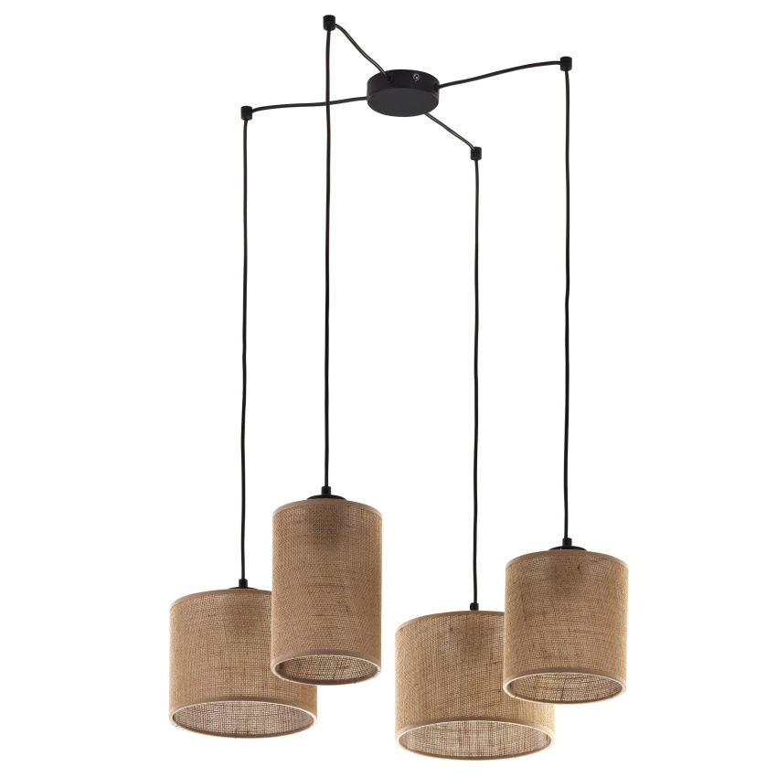 Závěsné svítidlo HALLUX TK JUTA 6585, 4×E27, hnědo-černé, textilní, ekologické, IP20.