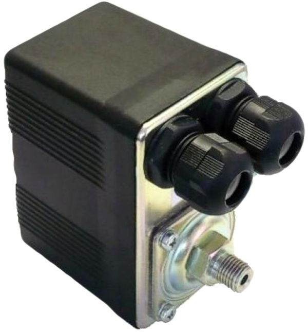 Tlakový spínač, spínání zejména 3-fázových elektrických obvodů (AC-3 10 A/ 400 V) vlivem změny tlaku v tlakových nádobách. Ve spojení s čerpadlem nebo kompresorem slouží k udržování tlaku v tlakových nádobách domácích vodáren v požadovaném rozmezí.