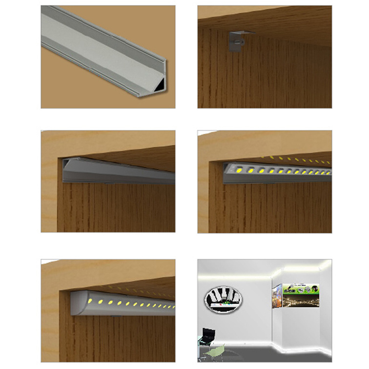 Rohový hliníkový profil pro LED pásky, rozměry průřezu cca 16x16 mm. Součástí je mléčný difuzor, který lze do profilu nacvaknout. Tento profil je určen pro krytí a chlazení LED pásků do šíře 10 mm. Upevnění k podkladu lze provést pomocí montážních úchytů, vrutů, lepidel.