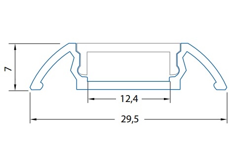 McLED Přisazený hliníkový profil pro LED pásky, rozměry průřezu cca 30x7 mm. Součástí je matný difuzor, který lze do profilu nasunout. Tento profil je určen pro krytí a chlazení LED pásků do šíře 12 mm. Upevnění k podkladu lze provést pomocí montážních úchytů, vrutů, lepidel. K profilu lze zakoupit úchyty a koncovky.